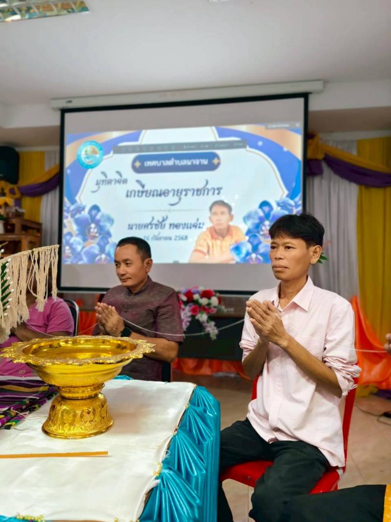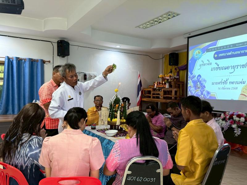 รายละเอียด : วันอังคารที่ 16 กันยายน 2568 เทศบาลตำบลนาจาน ได้จัดพิธีบายศรีสู่ขวัญ มุทิตาจิต เกษียณอายุราชการ นายศรชัย ทองแจ่ม โดยนายนันท์ บุญยิ่ง นายกเทศมนตรี ตำบลนาจาน ให้เกียรติเป็นประธานกล่าวขอบคุณ และอวยพรให้มีความสุขและสุขภาพแข็งแรงหลังใช้ชีวิตหลังเกษียณ และกล่าวอำลาด้วยความรักและความผูกพัน เพื่อแสดงความเสียดายที่ต้องลาแต่ยังคงความทรงจำที่ดีต่อกัน